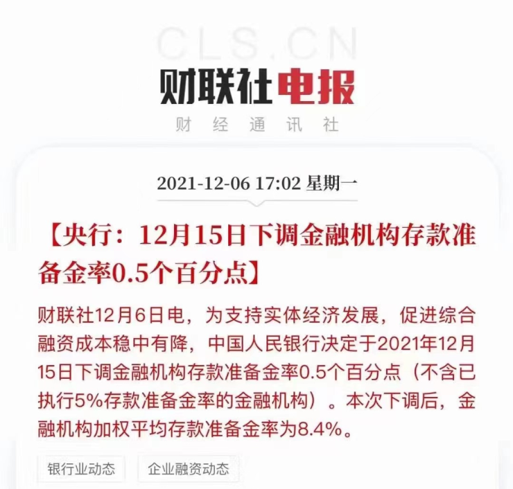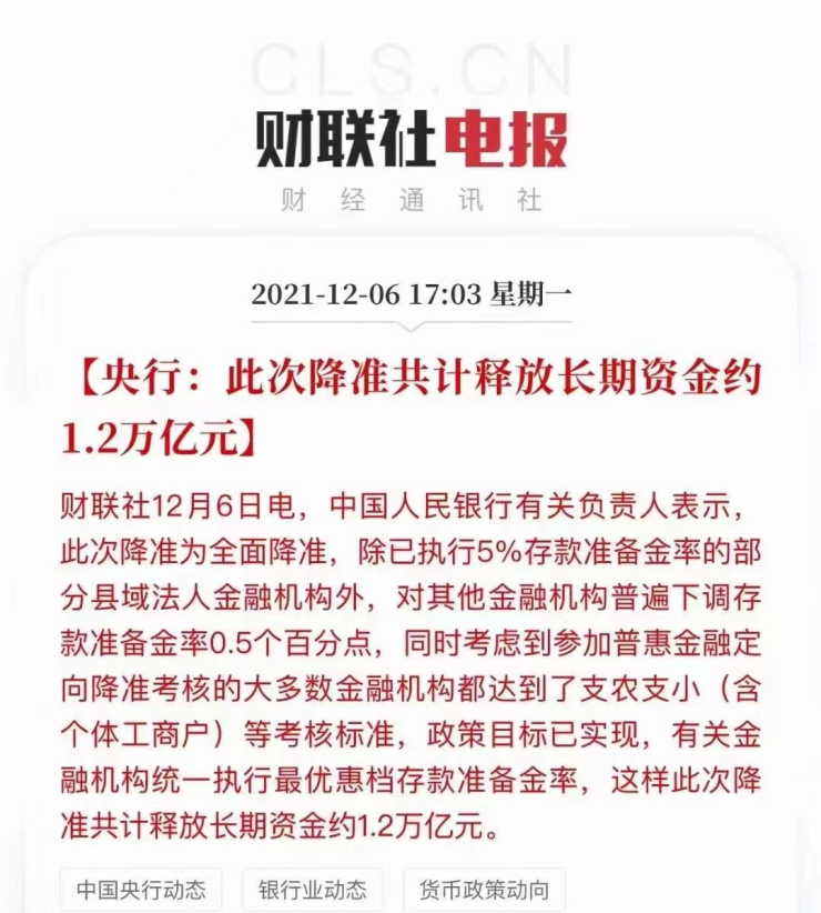 就在昨天,央行宣布将于2021年12月15日下调金融机构存款准备金率0.5个百分点,并将全面降准释放约1.2万亿资金!消息一出,便引发了市场热议。