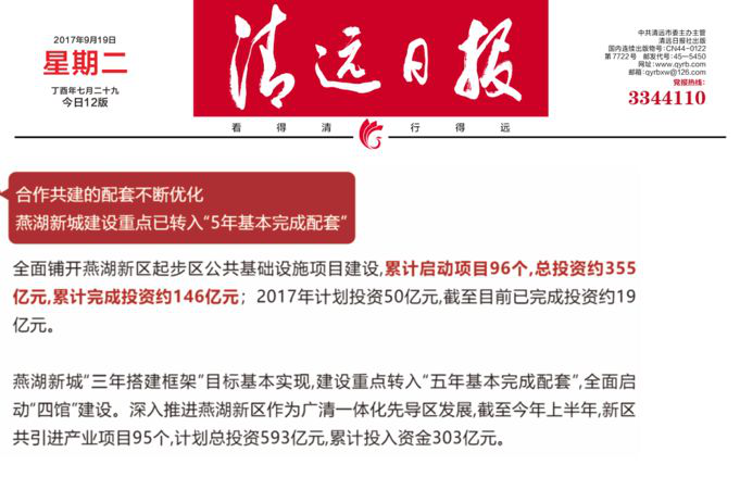 清远正大力打造未来市中心——燕湖新城,并进行四馆一中心等大型基建建设,其规划核心区建设的中央商务区与金融,必将承接粤港澳大湾区更多的产业与资源外溢。