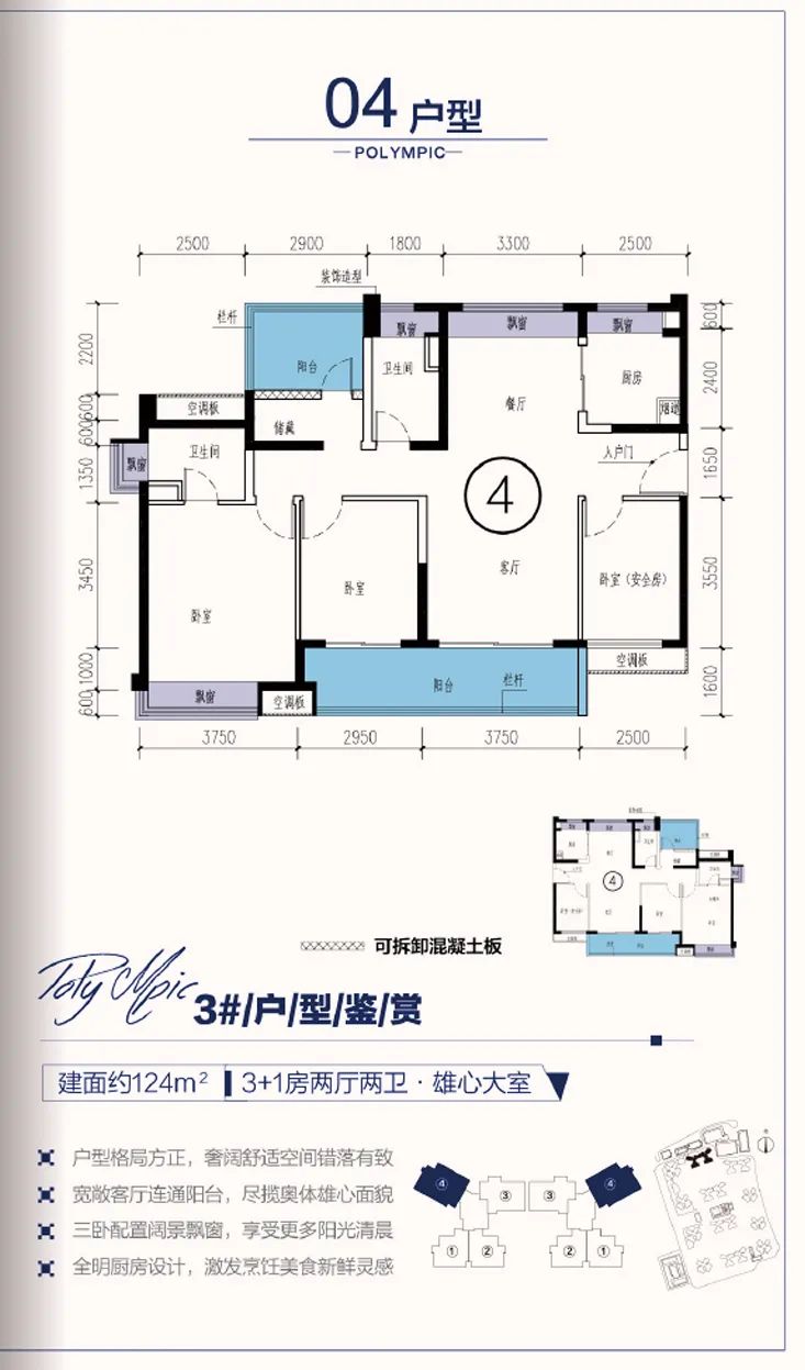 项目推出建面约80-124m²三房到四房精装美宅,户型百变多选,打造满足清远人居需求的理想之家!