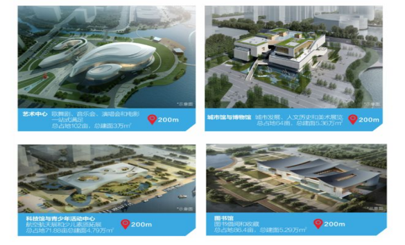 四馆一中心坐落在燕湖新城核心板块,距离项目200m。四馆一中心的意义就如广州四大馆于广州人民心中一样。已于2018年2月28日奠基建设,预计2020年投入使用,届时,四馆一中心将成为清远的新地标、全清远民的艺术文化标杆。