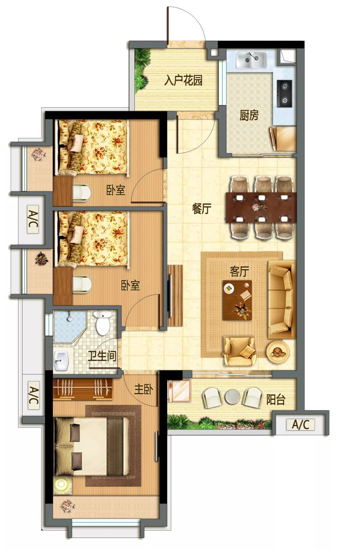 ●实用三卧室,皆带飘窗,满足成长型家庭需求